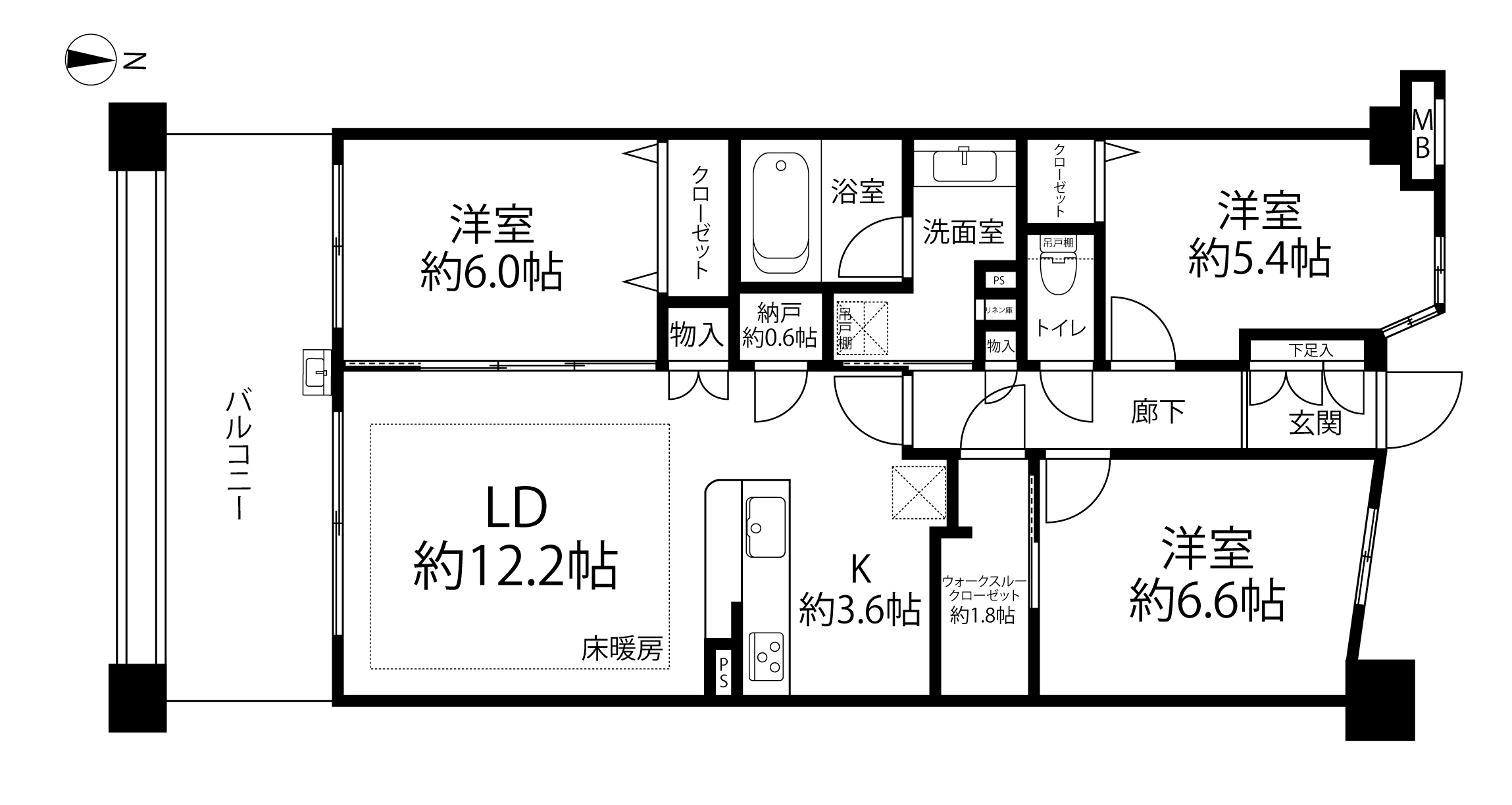 - バルコニー面積: 12.8㎡